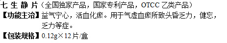 【功能主治】益氣寧心,活血化瘀。用于氣虛血瘀所致頭昏乏力,健忘,乏力等癥。