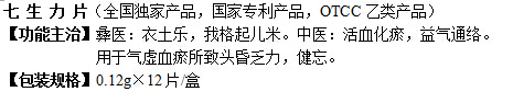 七 生 力 片(全國獨家產品,國家專利產品,OTCC乙類產品)