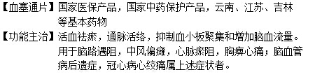 【功能主治】活血祛瘀,通脈活絡(luò),抑制血小板聚集和增加腦血流量。